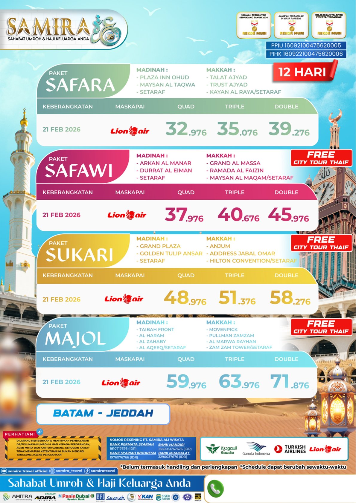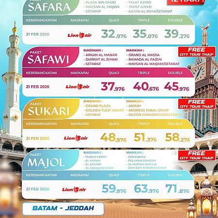 Paket Umroh Batam Lion 12D (21 Feb 2026)